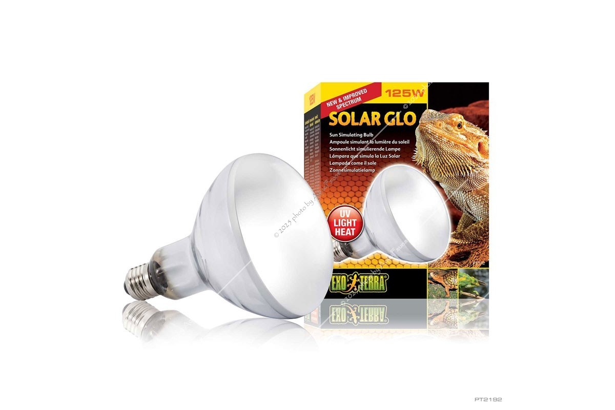 Az Exo Terra® Solar Glo egy öntöltő higanygőzlámpa, amely szabványos kerámia foglalatba illeszkedik (nincs szükség előtétre). Használható az Exo Terra® Light Dome (PT2057), az Exo Terra® Reptile Dome (PT2349) vagy az Exo Terra® Wire Light (PT2062) lámpával. Az Exo Terra® Solar Glo háromféle teljesítményben kapható: 80 W, 125 W és 160 W.