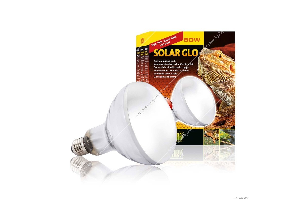 Az Exo Terra® Solar Glo egy öntöltő higanygőzlámpa, amely szabványos kerámia foglalatba illeszkedik (nincs szükség előtétre). Használható az Exo Terra® Light Dome (PT2057), az Exo Terra® Reptile Dome (PT2349) vagy az Exo Terra® Wire Light (PT2062) lámpával. Az Exo Terra® Solar Glo háromféle teljesítményben kapható: 80 W, 125 W és 160 W.