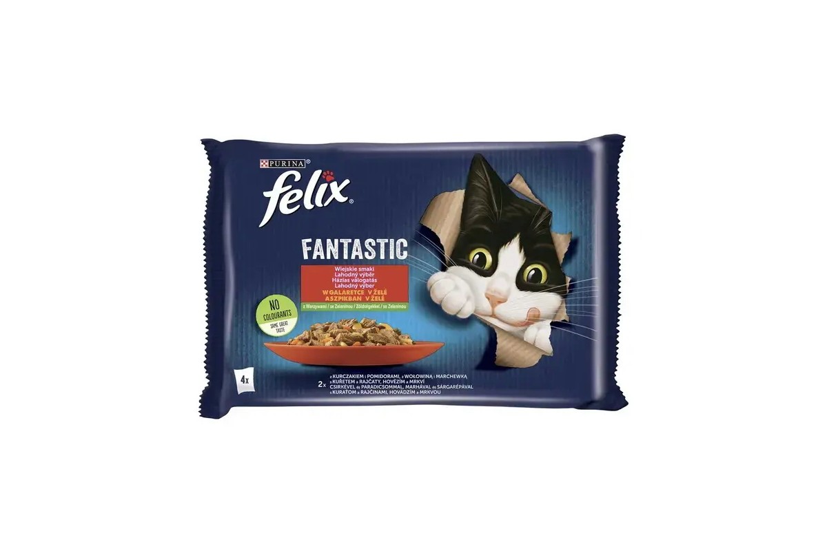 Felix Fantastic in Jelly - alutasakos (csirke,paradicsom,marha,sárgarépa) nedves eledel aszpikban, (4x85g)
