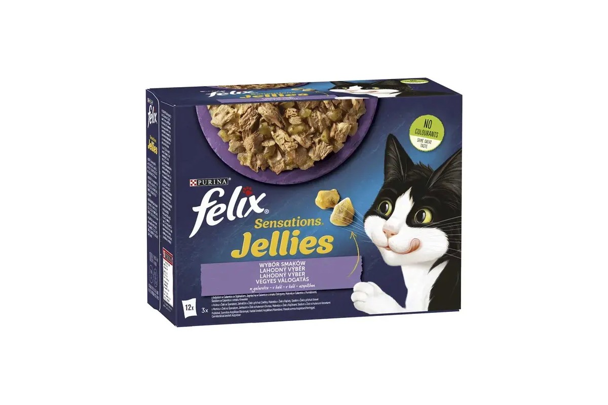 A FELIX® Sensations® Jellies termékek minőségi összetevők felhasználásával készült, ízletes és ellenállhatatlan eledelek széles választékát kínálják. Étvágygerjesztő látványával, fenséges illatával és ellenállhatatlan ízével elbűvöli cicád minden érzékszervét. Mindegyik eledel puha falatkákat tartalmaz ízletes és zamatos aszpikban a nagyszerű ízélményért. Hozzájárulnak macskád energiájának fenntartásához és a következő csintalansághoz!