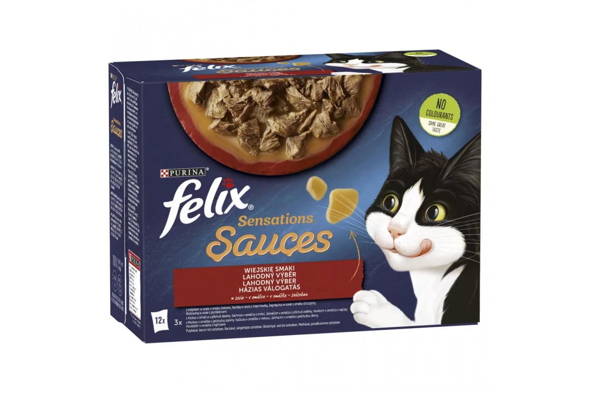 A FELIX® Sensations® Sauces termékek minőségi összetevők felhasználásával készült ízletes és ellenállhatatlan eledelek széles választékát kínálják. Étvágygerjesztő látványával, fenséges illatával és ellenállhatatlan ízével elbűvöli cicád minden érzékszervét.