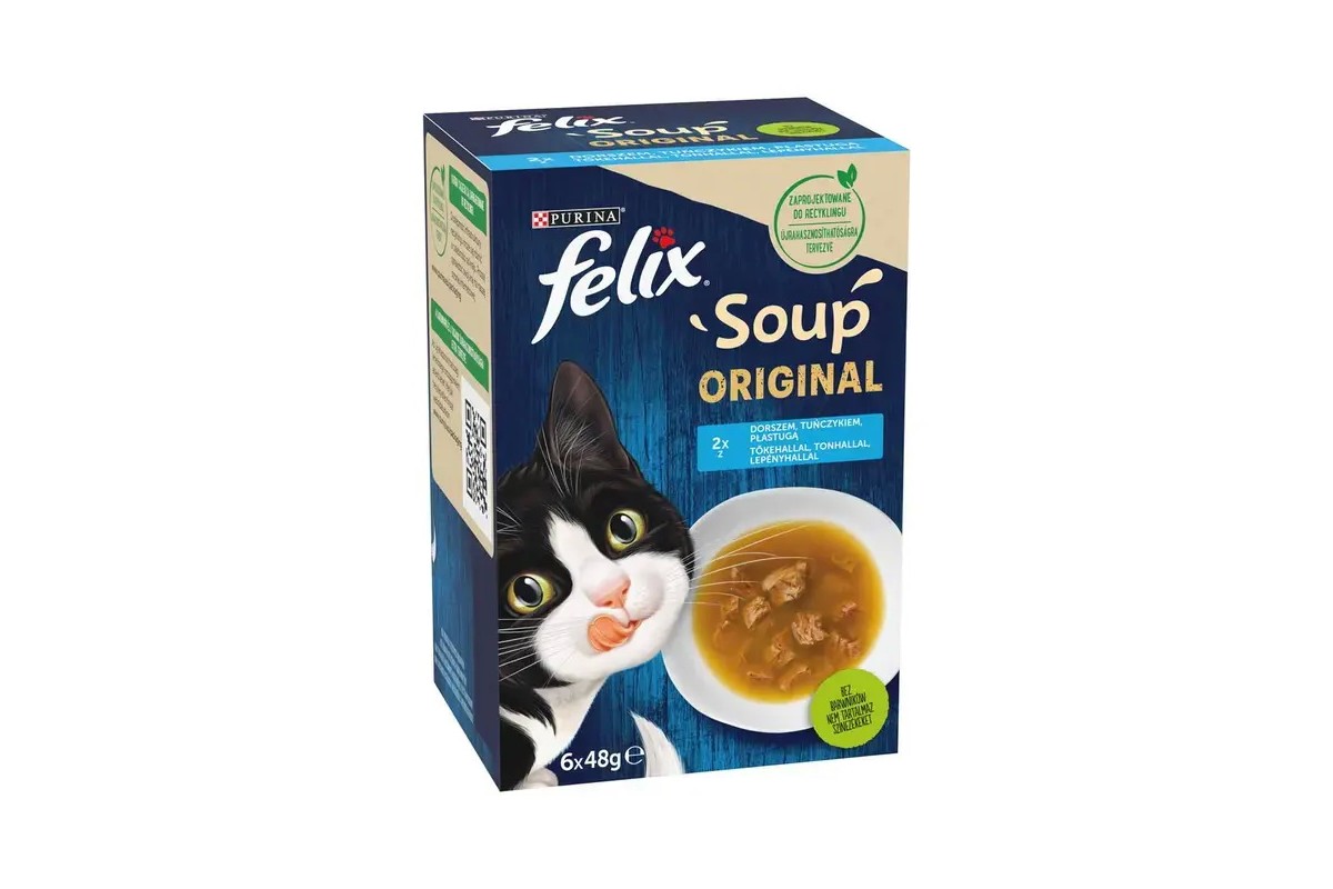 Felix Soup Originl - kiegészítő eleség (tőkehal,lepényhal,tonhal) macskák részére (6x48g)