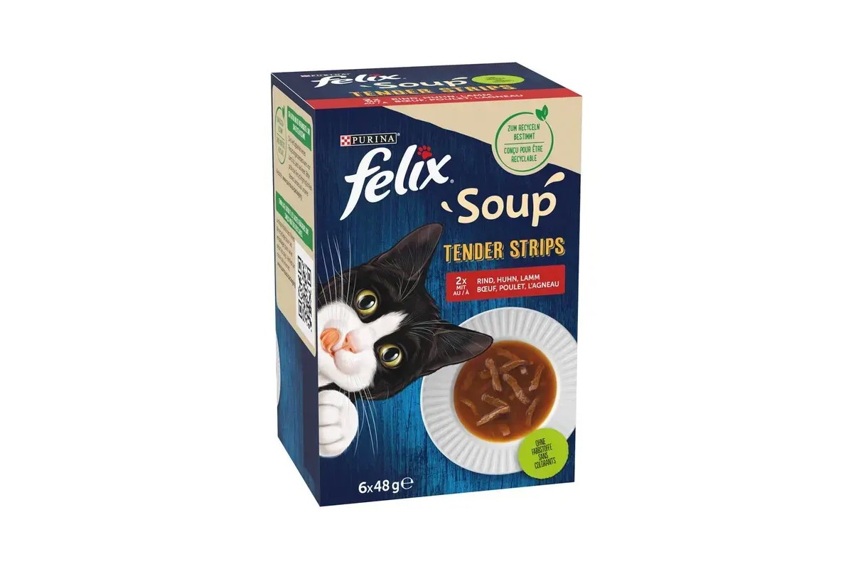 FELIX Soup Tender strips - nedves eledel (marha,csirke,bárány szószban) macskák részére (6x48g)