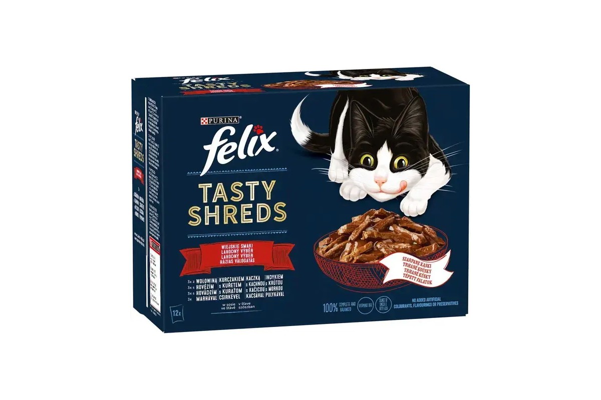 A FELIX Tasty Shreds puha és ellenállhatatlan tépett falatok ízletes szószban: macskád imádni fogja! Látványuk, illatuk és ízük olyan ízletes, mintha te magad készítetted volna!