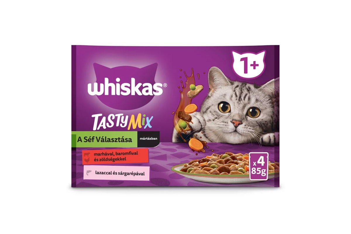 - Négy szenzációs receptet tartalmaz, melyeket macskaséfjeink válogattak ki: marha & baromfi kerti zöldségekkel, lazac & sárgarépa, csirke & fehérhal, fehérhal & kerti zöldségek.