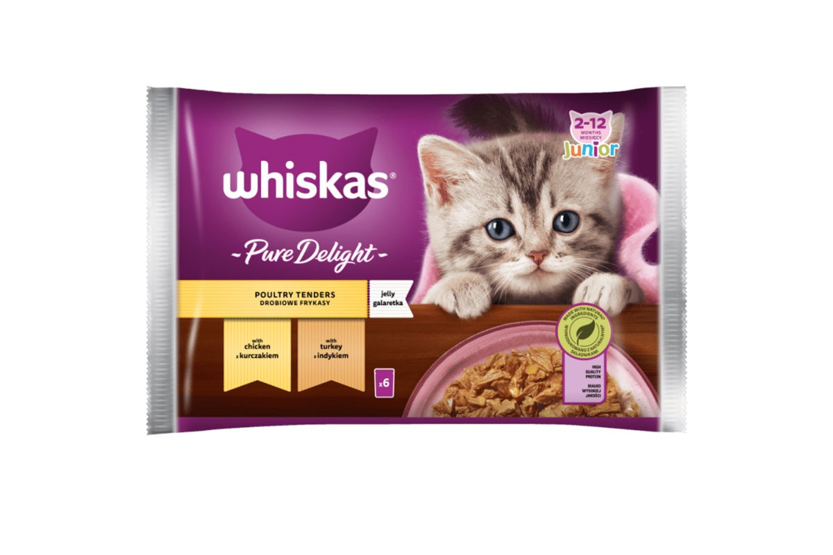 A Whiskas Junior Baromfi falatok ízletes ételdarabkái úgy készülnek, hogy megőrizzék természetes ízüket és tápértéküket.
