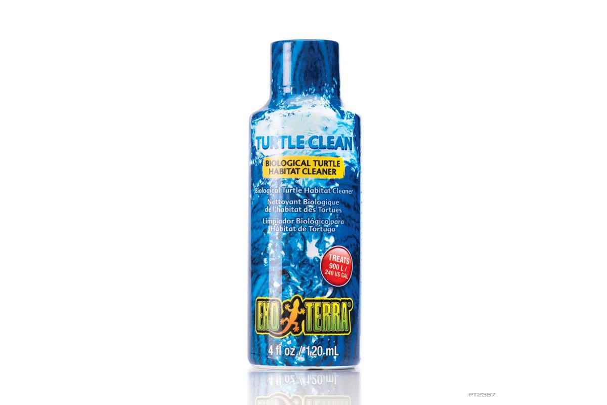 A teknősök különböző módon termelnek szerves hulladékot; növekedésük során folyamatosan hullajtják a páncéljuk és a bőrük részeit. Táplálkozás közben a körmükkel tépik és szakítják az ételt, és nagy mennyiségű hulladékot termelnek. Ez megterheli a szűrőket, és könnyen meghaladja a élőhelyükön található biológiai flóra kapacitását, hacsak nem alkalmazzák az Exo Terra Turtle Clean terméket. Az Exo Terra Turtle Clean a megfelelő hasznos biológiai flórát hozza létre, hogy biztosítsa a szerves hulladékok jelentős lebontását, ha az ajánlott heti adagban használják.