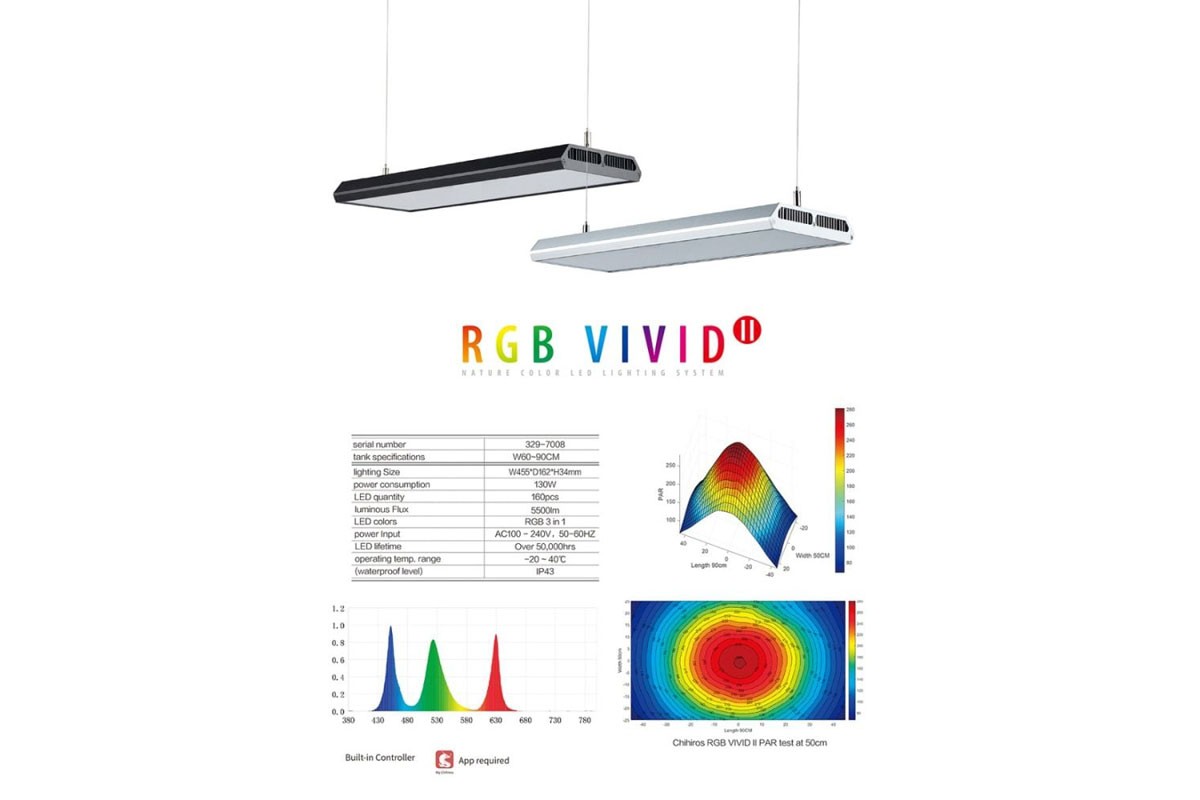 A Vivid II Mate a Chihiros lámpák csúcsa. Nagyobb akváriumokban is elegendő fényerőt nyújt a legigényesebb növények számára is. A My Chihiros applikáció és a beépített Bluetooth vezérlő segítségével a fény színvilágát is kedvünkre szabályozhatjuk a fényerő mellett, így biztosan a számunkra legszebb látványt érhetjük el akváriumunkban. Az applikációban néhány kattintással állíthatunk napfelkeltét és naplementét, ami amellett, hogy látványos, halaink számára is barátságosabb, mint a világítás hirtelen fel-le kapcsolása.