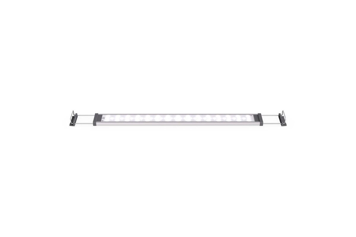 A lámpatest 28 W teljesítménnyel és 2300 lumen fényárammal rendelkezik. A 24 fehér és 24 RGB 3in1 LED együttesen biztosítja a kiegyensúlyozott spektrumot, így a növények egészséges növekedése és a halak színének élénksége egyszerre valósul meg. A beépített vezérlőegység és a My Chihiros mobilalkalmazás lehetővé teszi az időzítés, fényerő és programozott világítási ciklusok pontos beállítását – mindezt egyetlen okostelefonról.