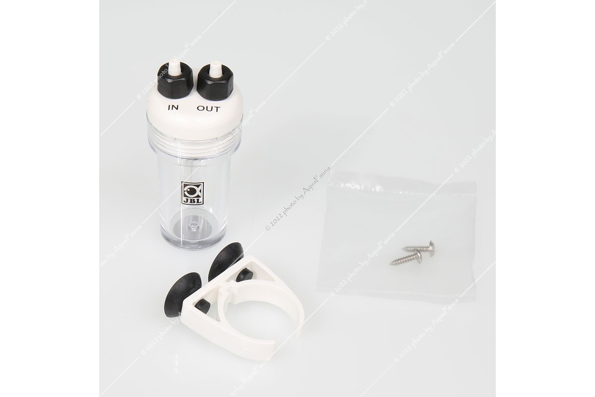 Töltse meg a buborékszámlálót vízzel, csatlakoztassa tömlővel a CO2 rendszerhez és a diffúzorhoz, rögzítse az akváriumon kívül 2 tapadókoronggal az üvegre vagy 2 csavarral a bútorra.