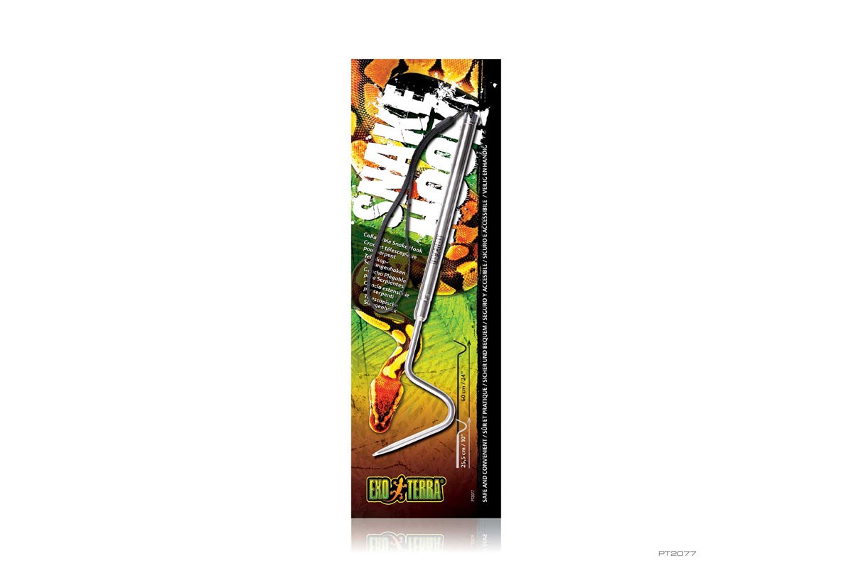 Az Exo Terra kígyóhorgot úgy tervezték, hogy a kígyókezelés mind a kezelő, mind a kígyó számára könnyebb és biztonságosabb legyen. Számos kígyó hőérzékeny, és védekező vagy kíváncsi reakciót mutathat a meleg testrészek, például a kezek és karok iránt. A hűvös fém nem adja át a hőt, így kevésbé stresszes a kígyó számára és biztonságosabb a kezelő számára. Az Exo Terra kígyóhorog hegye lekerekített, hogy megelőzze a sérüléseket.