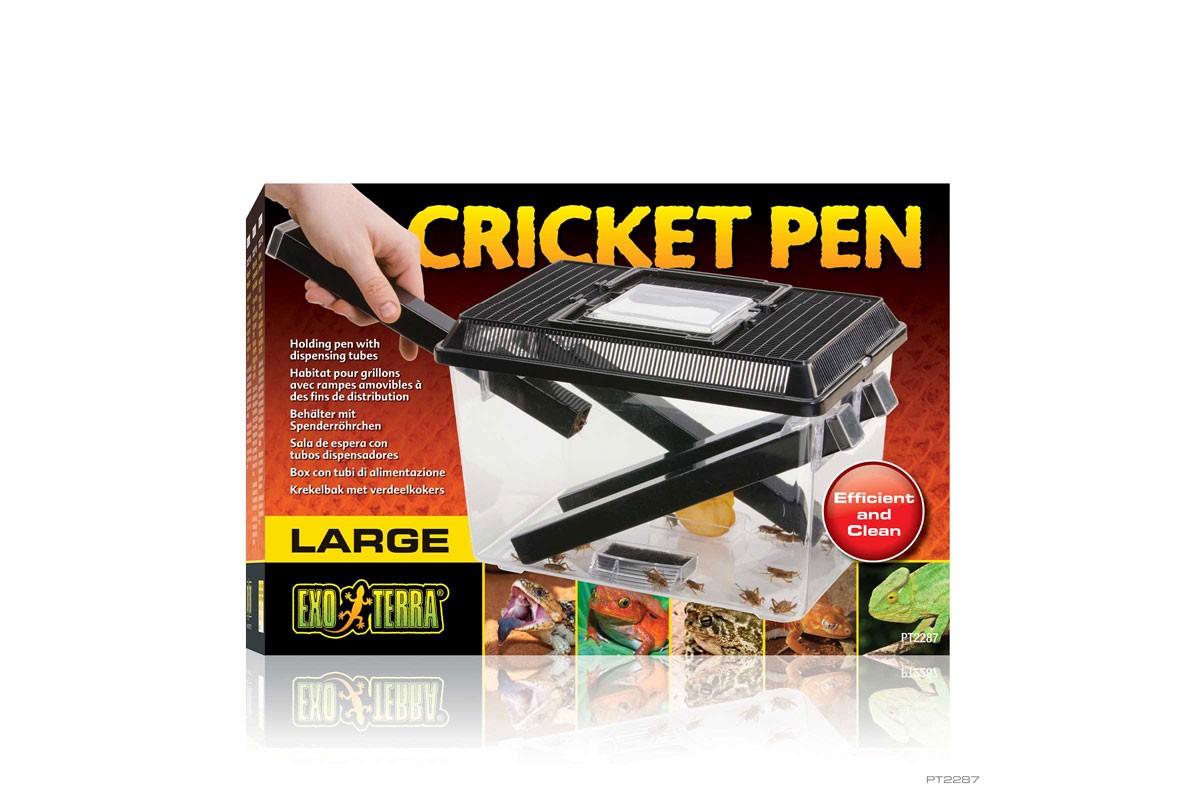 Az Exo Terra tücsökketrec ideális élő tücskök tartására, tárolására és adagolására. A tücskök a sötét helyeket kedvelik, és könnyen bebújnak a csövekbe, amelyek rejtekhelyet nyújtanak számukra, így a csöveket könnyen adagolóeszközként lehet használni. A csövek a fedél eltávolítása után is a helyükön maradnak, így könnyen hozzáférhetők és kisebb az esélye a tücskök szökésének. Egyszerűen húzza ki a csövet, rázzon néhány tücsköt a terráriumba vagy az etetőbe, majd helyezze vissza a csövet a ketrecbe.