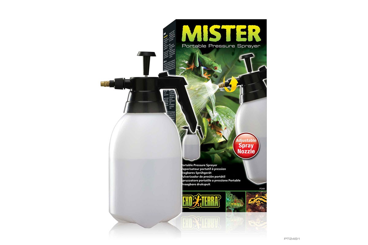 Az Exo Terra Mister egy könnyen használható nyomáspermetező, amely kiküszöböli a "ravaszpermetező" használatának gondját. A szórófej állítható, hogy lehetővé tegye az egysugaras vagy teljes ködpermetezést, és zárómechanizmussal rendelkezik, amely lehetővé teszi a folyamatos permetezést. A nagy kapacitású tartály 2 literes (67,5 fl oz), és ideális nagyobb vagy több terráriumokban, kültéri berendezésekben és üvegházakban való használatra.