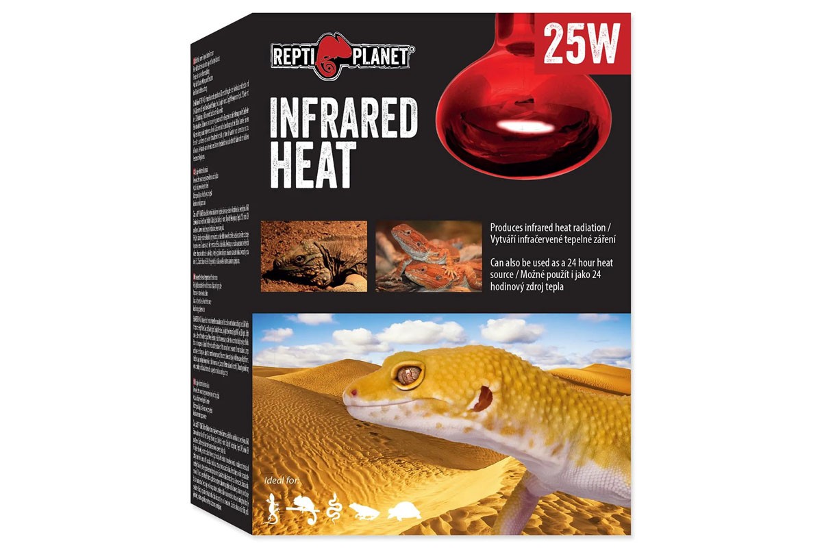 A REPTI PLANET Infrared Heat izzó infravörös hősugárzást hoz létre, és ideális fény- és UVB-izzókkal (például Repti Planet Daylight Basking Spot, Daylight Frosted, Daylight Neodymium, Repti UVB) vagy LED-es lámpákkal kombinálva. A fény színe vörös üveg segítségével érhető el.