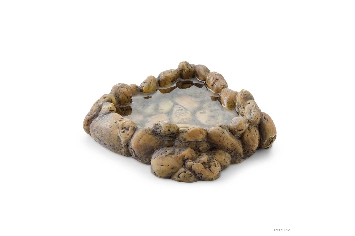 A tiszta és friss víz jelenléte fontos a fogságban tartott hüllők és kétéltűek megfelelő gondozásához és tartásához. Az Exo Terra sarok víztál nagyon valósághű kavicsos felülettel rendelkezik, amely hozzájárul a terrárium természetes megjelenéséhez. A kavicsok semleges, természetes színe lehetővé teszi a sivatagi, trópusi vagy bármilyen más típusú terráriumba való könnyű beillesztést. Az esztétikus és helytakarékos kialakításnak köszönhetően az Exo Terra sarok víztál tökéletesen illeszkedik a terrárium sarkába. A könnyen tisztítható, élelmiszeripari minőségű műgyanta megakadályozza a káros baktériumok kialakulását. A kisebb hüllők, kétéltűek és rovarok könnyen kijuthatnak a víztálból a tál belsejében található „biztonsági lépcsők” segítségével, amelyek megakadályozzák a fulladást.