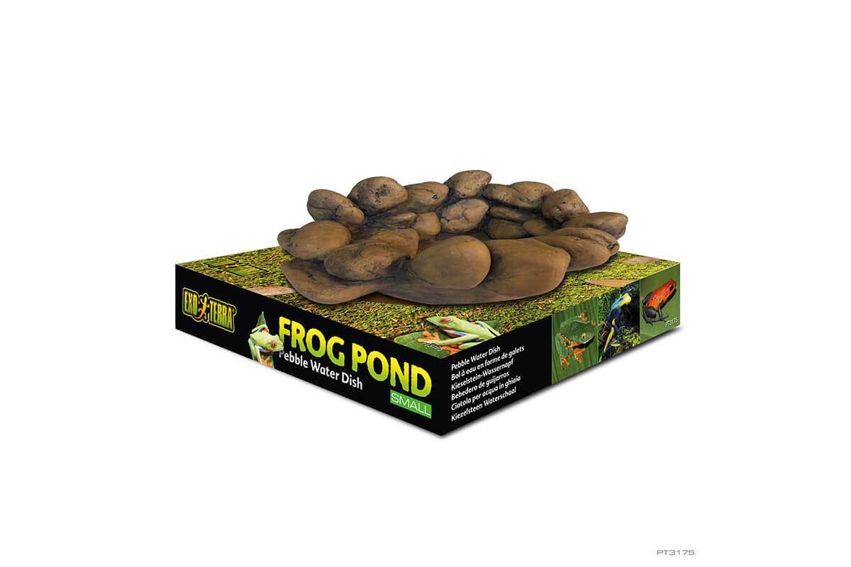 A tiszta és friss víz jelenléte fontos a fogságban tartott hüllők és kétéltűek megfelelő gondozásához és tartásához. Az Exo Terra® Frog Pond nagyon természetes és valósághű kavicsos felülettel rendelkezik, amely bármilyen típusú terráriumba illeszkedik. A Frog Pond egyedi alakja lehetővé teszi, hogy a tavat félig süllyesztve helyezze el az aljzatban, így utánozva a part menti övezetet. Ez a kialakítás könnyű hozzáférést biztosít a hüllők és kétéltűek számára a vízhez, míg a sekély víztest és a beépített lépcsők megakadályozzák az állatok fulladását.