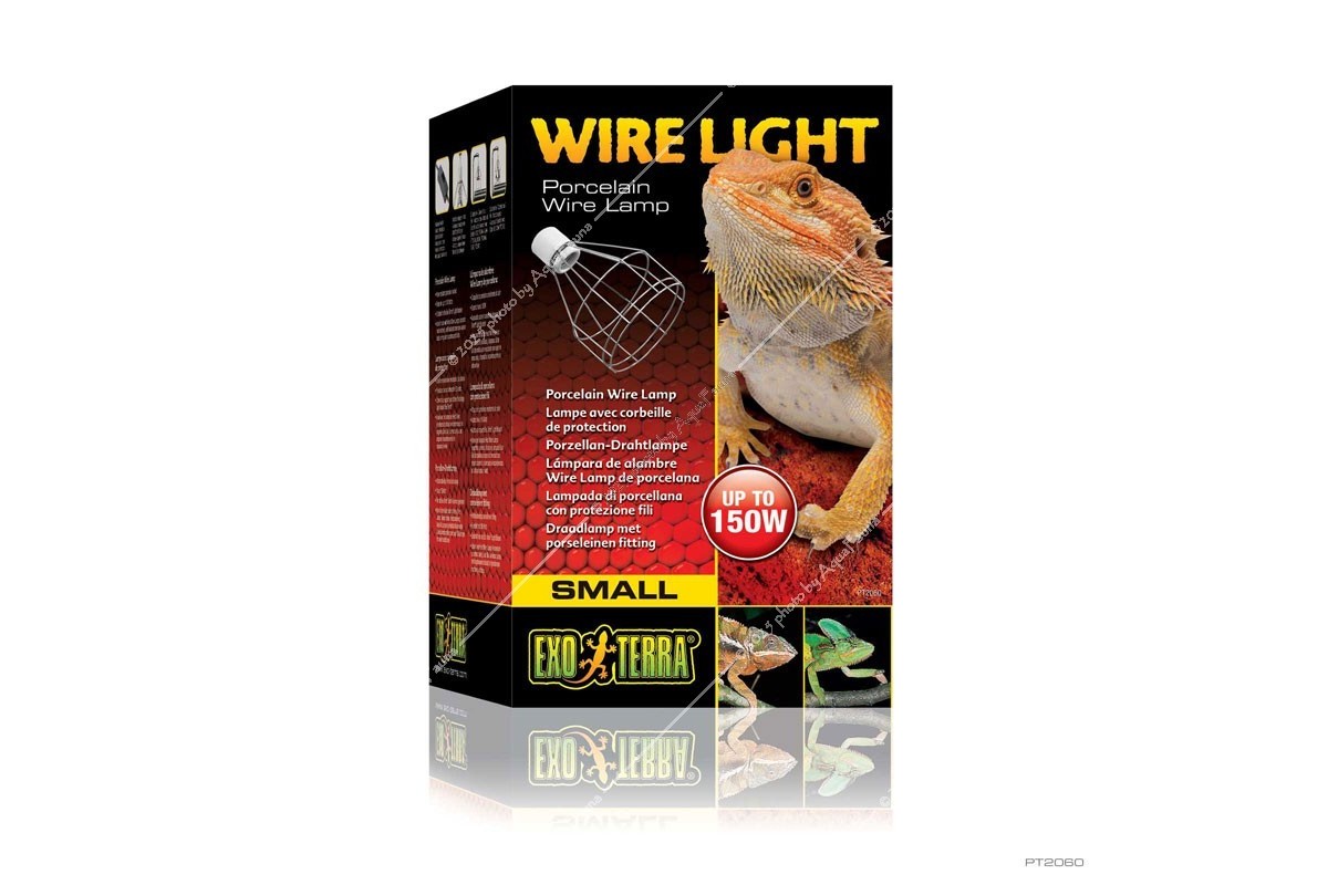 Az Exo Terra vezetékes lámpa hőálló porcelán foglalattal rendelkezik, amely 150 wattig terhelhető. Ideális hőhullám lámpákhoz (kerámia hőemiterek), önballasztos higanygőz lámpákhoz és minden típusú hagyományos izzólámpához. A vezetékvédő megakadályozza a felesleges hő felhalmozódását. Az Exo Terra vezetékes lámpa az egyetlen lámpa, amely az Exo Terra hőhullám lámpával együtt használva minden biztonsági előírást teljesít. A Wire Light lámpát az Exo Terra Light Bracket lámpatartóval kombinálva biztonságosan fel lehet függeszteni bármilyen üvegterrárium fölé.
