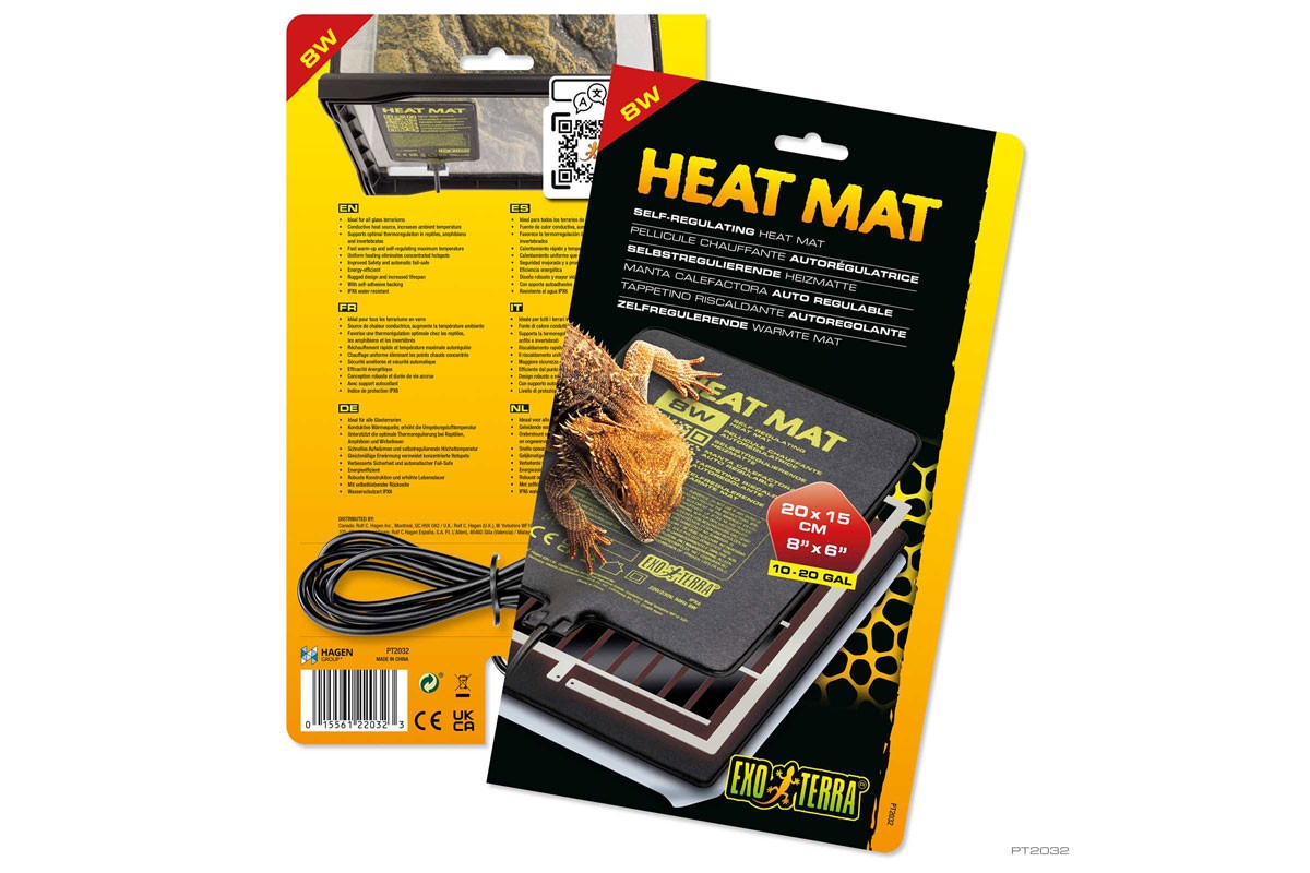 Javasoljuk, hogy a Heat Mat hővezető hőjét kombinálja az Exo Terra Basking Spots infravörös-A sugárzó hőjével. A Basking Spots napenergia-sűrűsége és a Heat Mat hővezető hője együttesen lehetővé teszi a hüllők számára, hogy testhőmérsékletüket szabályozzák, és így elérjék az optimális hőmérsékletet a fokozott aktivitás és az egészséges emésztés érdekében. A Basking Spot kis mennyiségű UVA-sugárzása szintén hozzájárul fiziológiai jólétükhöz és serkenti a szaporodási viselkedést.