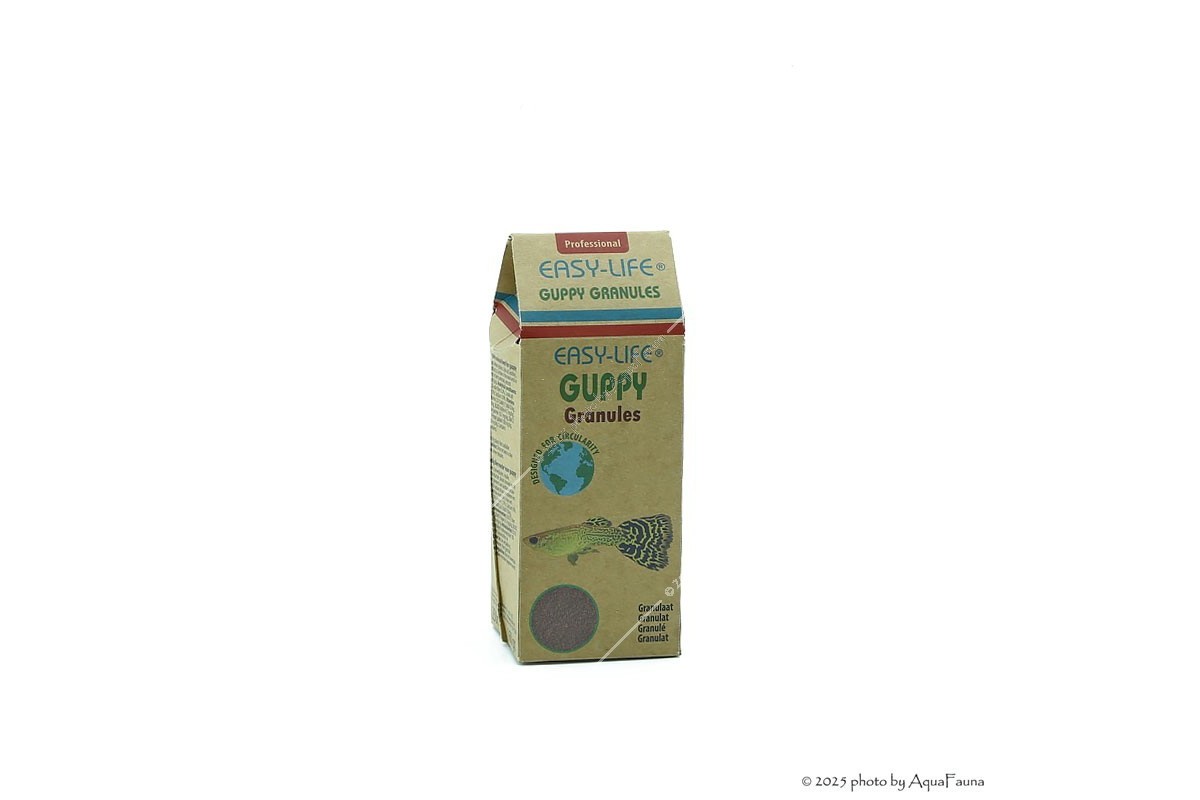 Az Easy-Life guppi granulátum (apró granulátum) kiváló minőségű tápanyagok (fehérjék, rostok, ásványi anyagok, vitaminok) teljes keverékéből áll.