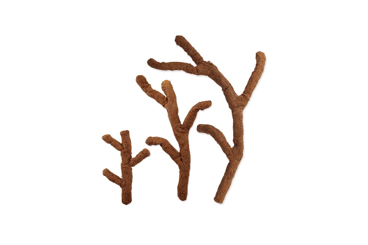 A COCO TRONCHO dekoráció természetes kókuszrostokból készült. Nagyon dekoratív tárgy, amely az állatoknak nagy mozgási és mászási teret biztosít a terráriumban. Az ág természetes kialakítású, rugalmas, könnyen felszerelhető (függőlegesen és vízszintesen) és dekoratív tulajdonságokkal rendelkezik. Ideális növények (tillandsia, bromélia és orchidea) és más, főként mászó növények rögzítéséhez.