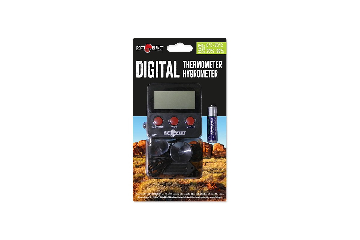 Könnyen ellenőrizhető hőmérő a terráriumok relatív páratartalmának és hőmérsékletének mérésére.