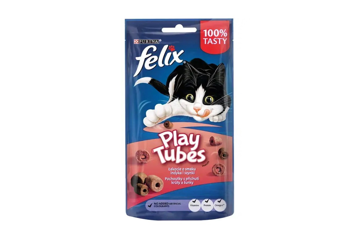 A Felix Play Tubes megízesíti a napi közös játékot. Egyedi, hengeres alakja, kettős ízesítése, változatos méretei és a cicád által ismert és szeretett Felix jutalomfalatok íze ellenállhatatlanul játékossá teszi. Csak dobj egy jutalomfalatot a padlóra, és figyeld meg, ahogy cicád egyből utánairamodik!