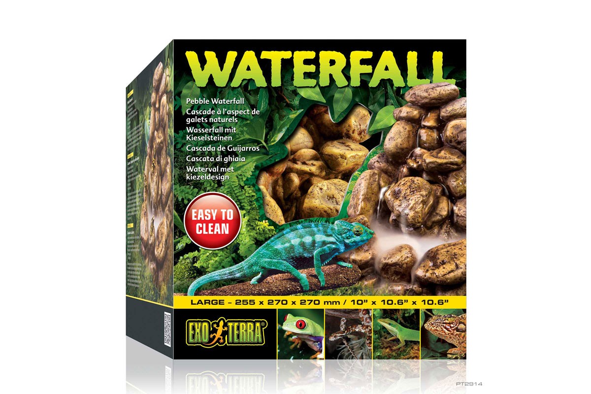 Az Exo Terra vízesés kavicsos kialakítása egy kis, zúgó patak természetes megjelenését hozza a nappaliba. A hüllők és kétéltűek gyakran használják hidratálásra, ezek a kis vízesések és patakok minden trópusi környezet fontos elemei. A zúgó víz serkenti a gyíkok (például: kaméleonok, anolák, vízisárkányok stb.) természetes ivási viselkedését.