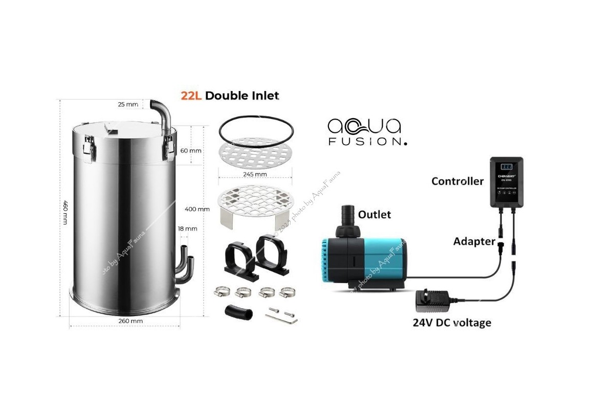 Aqua Fusion Max 220 – 22 literes Rozsdamentes acél külső szűrő (dupla bemenettel)