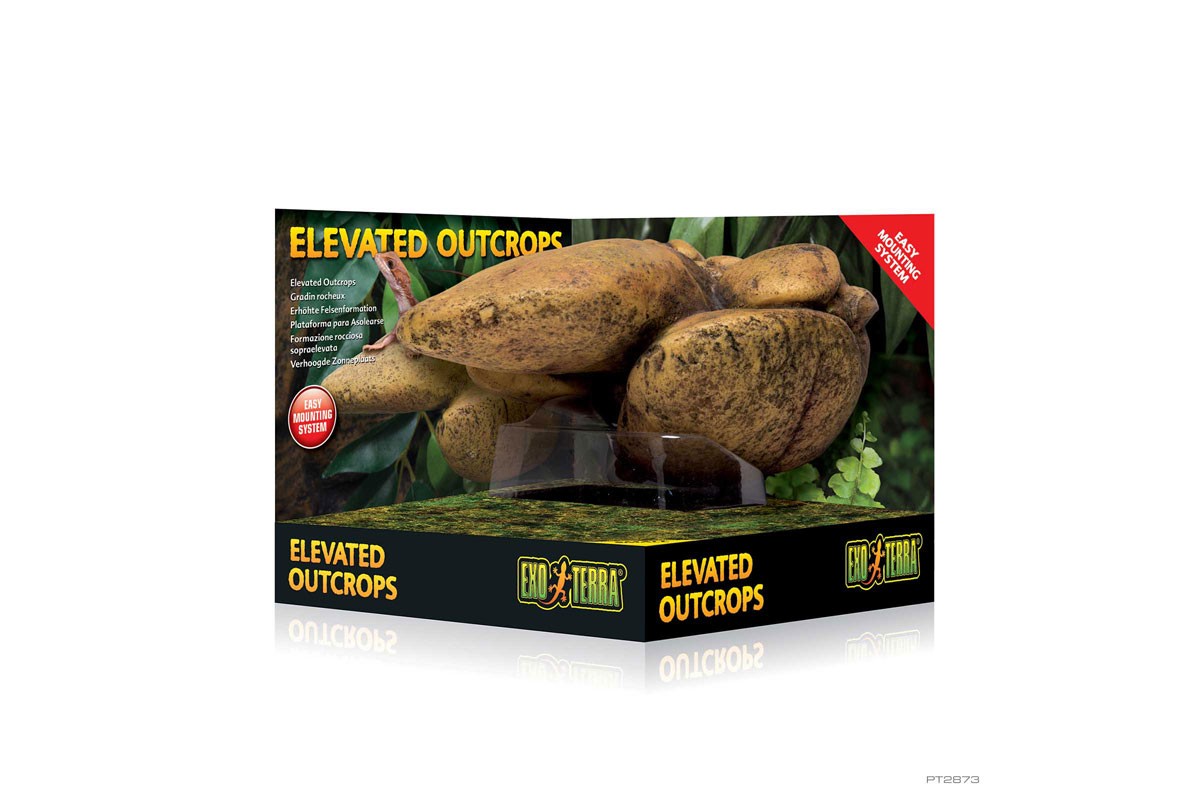 Az Exo Terra emelt szikla kiemelkedés további emelt napozóhelyet és megnövelt 3D-s lakóteret biztosít a hüllőknek. Az emelt szikla kiemelkedés lehetővé teszi állatainak, hogy közelebb kerüljenek a hő- és UV-izzókhoz, maximalizálva az UV- és hőszabályozást. A hüllők és kétéltűek az emelt sziklát megfigyelőhelyként és biztonságos alvóhelyként is használhatják, így nagyobb biztonságérzetet élvezhetnek és csökken az éjszakai stressz.