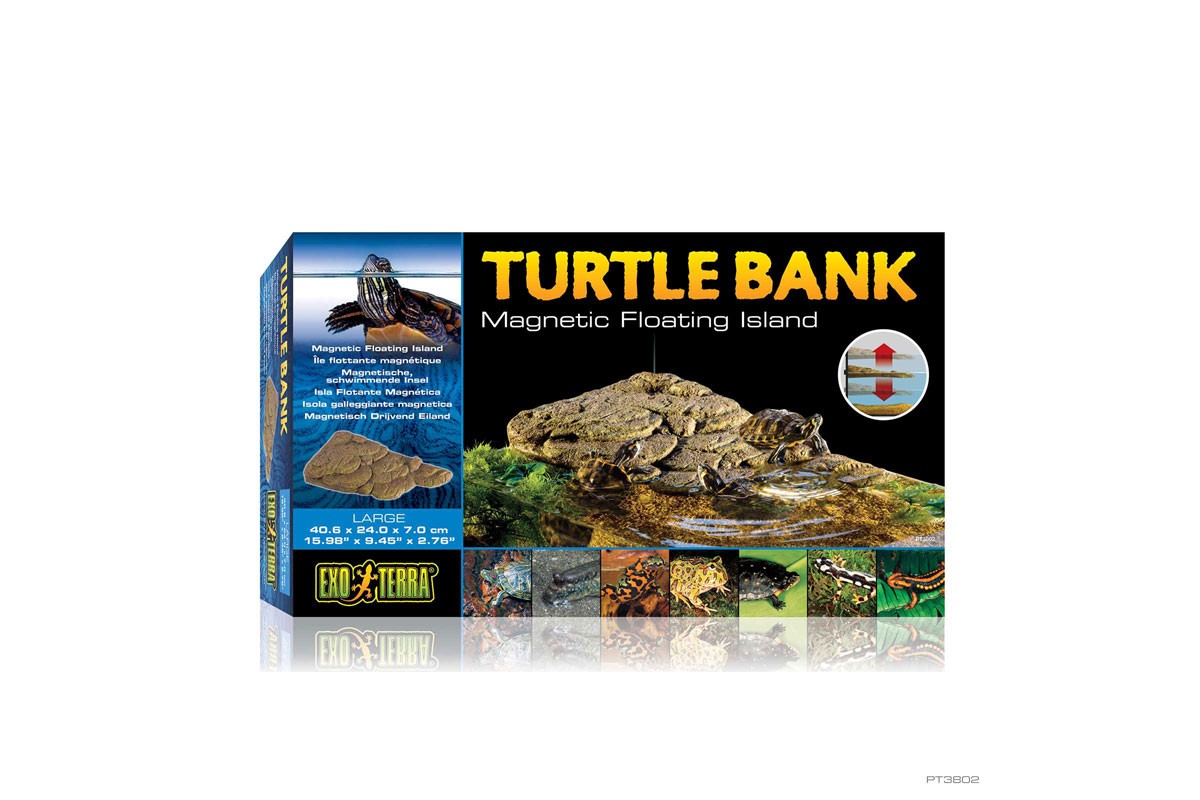 Az Exo Terra Turtle Bank egy egyedülálló úszó napozóterület vízi teknősök számára. Mágnesekkel rögzítve, az Exo Terra Turtle Bank a terrárium sarkában helyezhető el, hogy maximalizálja az úszási területet. Az összes vízszinthez automatikusan alkalmazkodó, víz alá merülő rámpa lehetővé teszi a teknősök számára a száraz napozóterületre való könnyű bejutást, hogy maximálisan ki legyenek téve a hőnek és az UVB-lámpáknak. 3 méretben kapható, így bármilyen méretű vízi teknős terráriumhoz illeszkedik, vagy több méretű Turtle Bank elhelyezésére is lehetőség van ugyanazon terráriumban.