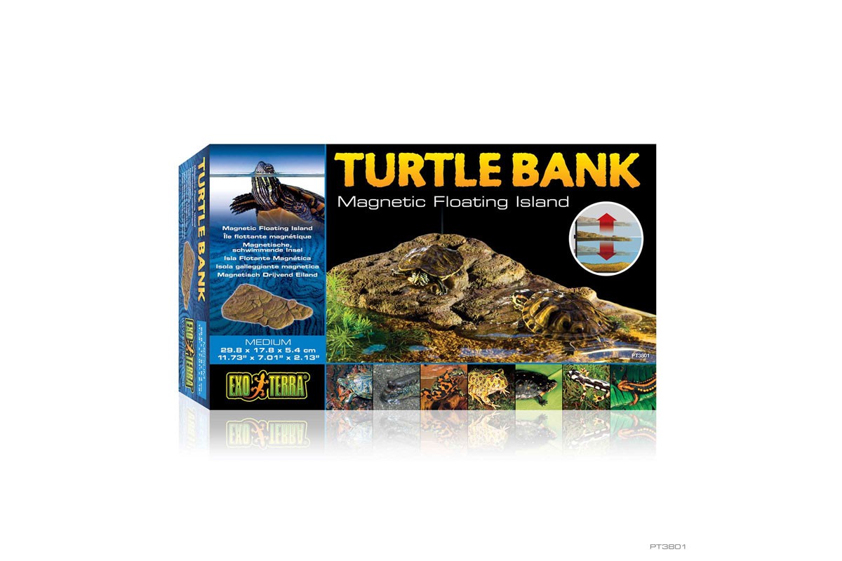 Az Exo Terra Turtle Bank egy egyedülálló úszó napozóterület vízi teknősök számára. Mágnesekkel rögzítve, az Exo Terra Turtle Bank a terrárium sarkában helyezhető el, hogy maximalizálja az úszási területet. Az összes vízszinthez automatikusan alkalmazkodó, víz alá merülő rámpa lehetővé teszi a teknősök számára a száraz napozóterületre való könnyű bejutást, hogy maximálisan ki legyenek téve a hőnek és az UVB-lámpáknak. 3 méretben kapható, így bármilyen méretű vízi teknős terráriumhoz illeszkedik, vagy több méretű Turtle Bank elhelyezésére is lehetőség van ugyanazon terráriumban.