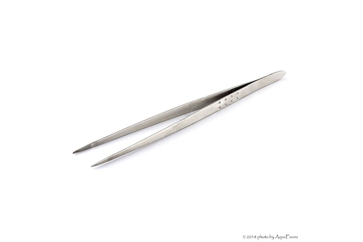 Rozsdamentes acél, hegyes végű csipesz vízinövények gondozásához, terráriumi állatok etetéséhez.