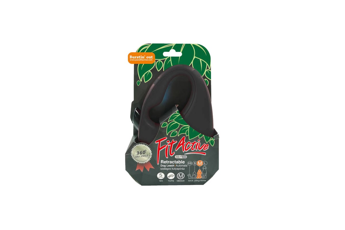 FitActive Retractable Dog Leash - automata szalagos póráz (fekete) kutyáknak (L) 5 méter