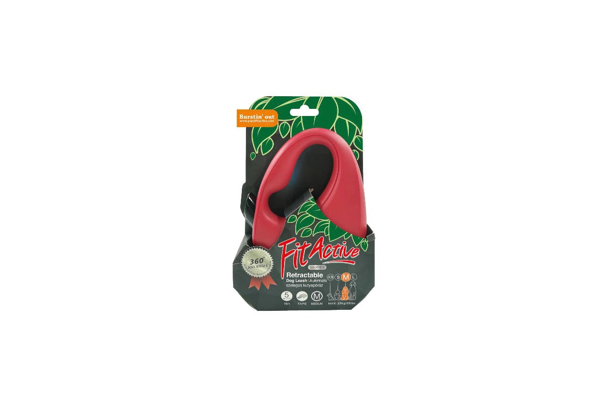 FitActive Retractable Dog Leash - automata szalagos póráz (piros) kutyáknak (M) 5 méter