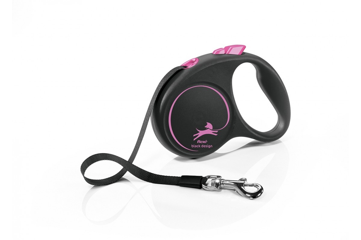 Flexi Black Design "S" (pink) - szalagos automata póráz (5 m)