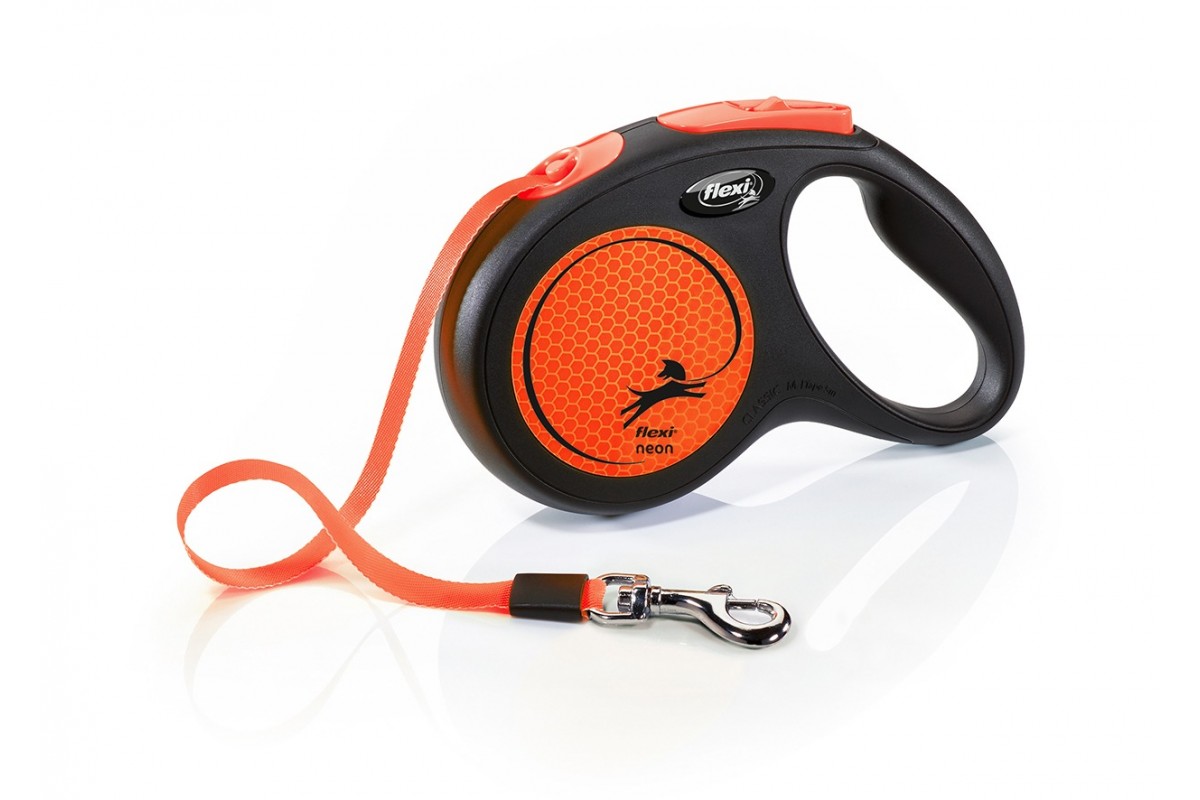 Flexi New Neon "M" - szalagos automata póráz (5 m) max. 25 kg - narancs