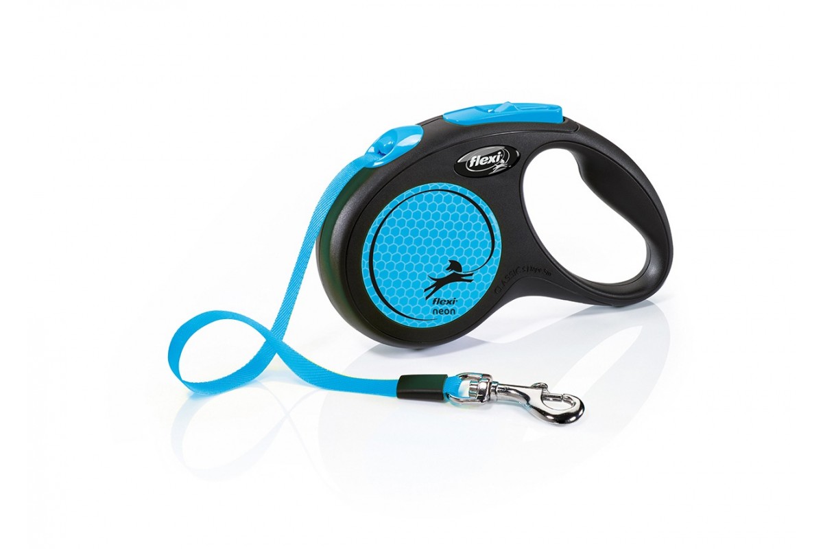 Flexi New Neon "S" - szalagos automata póráz (5 m) max. 15 kg - kék