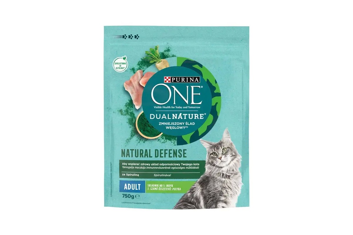 A Purina ONE DualNature különböző állagú tápszemcsék izgalmas kombinációja, valamint természetes Spirulinát tartalmaz. 100%-ban teljes értékű és kiegyensúlyozott eledel, mely amellett, hogy tartalmazza az alapvető tápanyagokat, pulykában gazdag, ezért macskád oda lesz érte.