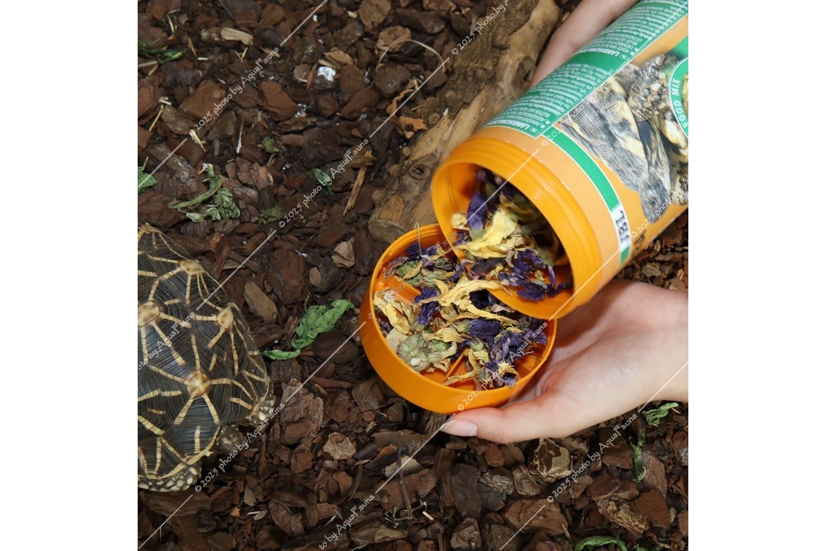 - 56 % virágtartalom a kiegyensúlyozott táplálkozás érdekében, mivel a teknősök a vadonban rendkívül szívesen esznek virágokat.