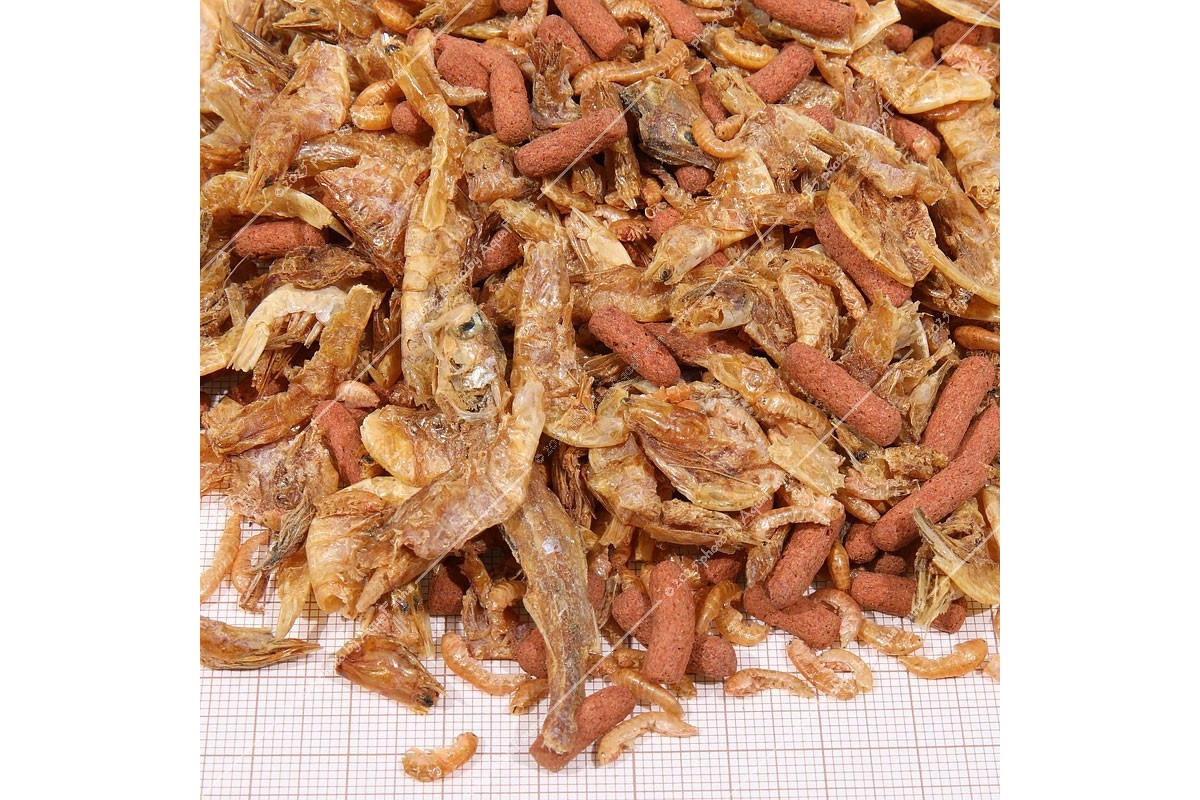- Kíméletesen szárított gammarusokat (kb. 1 cm), garnélarákokat (kb. 3 cm), halakat (max. 9 cm) és halat tartalmazó táplálékrudakat (kb. 1,5 cm) tartalmaz a változatos és természetes táplálkozás érdekében.