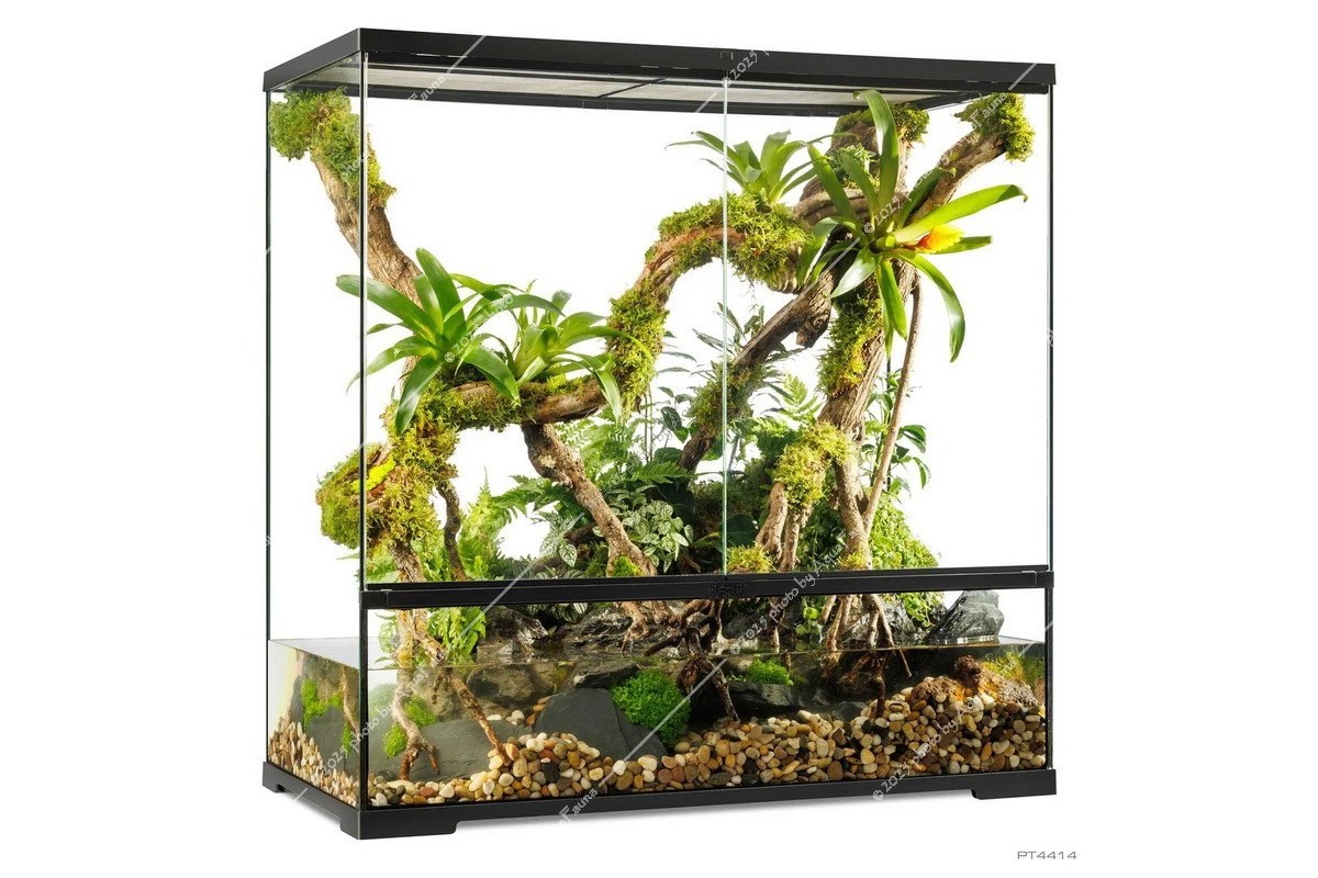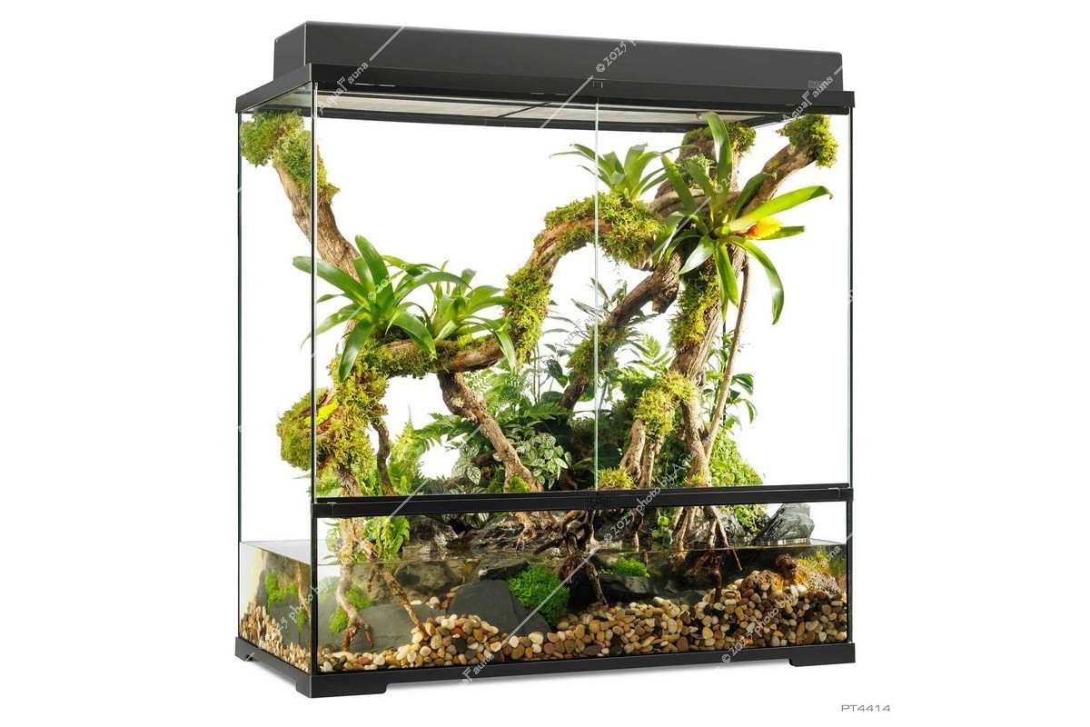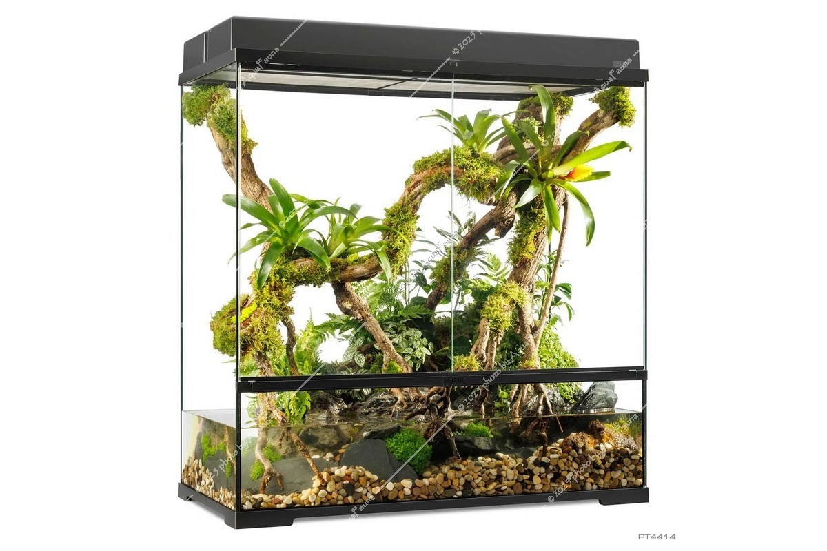 Fedezze fel az Exo Terra Pro Paludarium™ kifinomultságát, ahol a legmodernebb dizájn páratlan funkcionalitással találkozik. Európai herpetológusok által tervezett Advanced Natural Terrarium ideális otthont nyújt hüllőinek, kétéltűinek vagy gerinctelen állatainak.