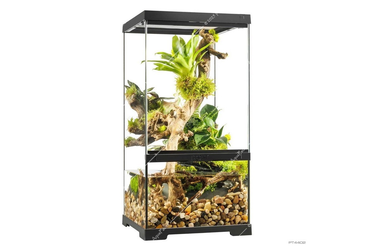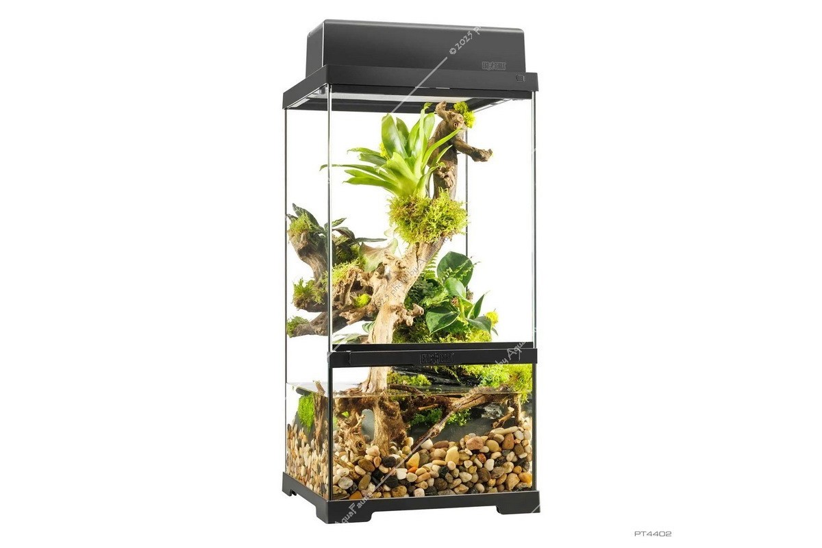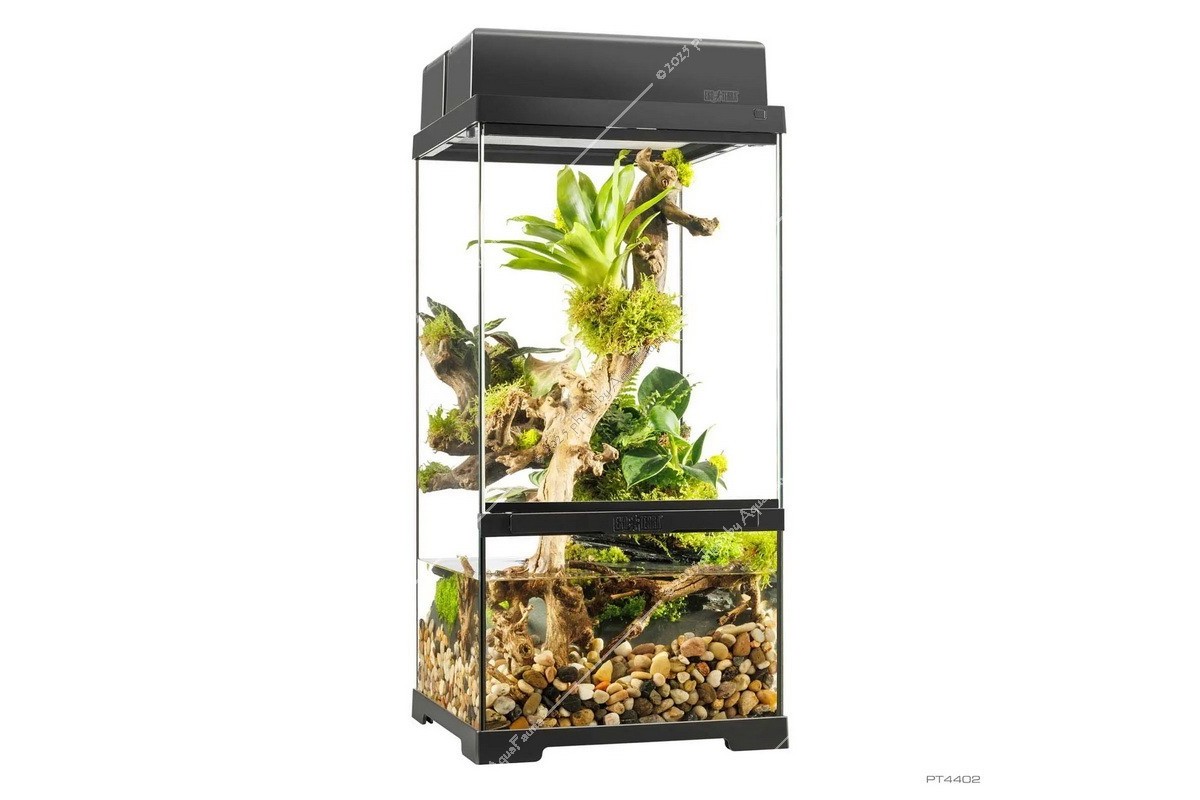 Fedezze fel az Exo Terra Pro Paludarium™ kifinomultságát, ahol a legmodernebb dizájn páratlan funkcionalitással találkozik. Európai herpetológusok által tervezett Advanced Natural Terrarium ideális otthont nyújt hüllőinek, kétéltűinek vagy gerinctelen állatainak.
