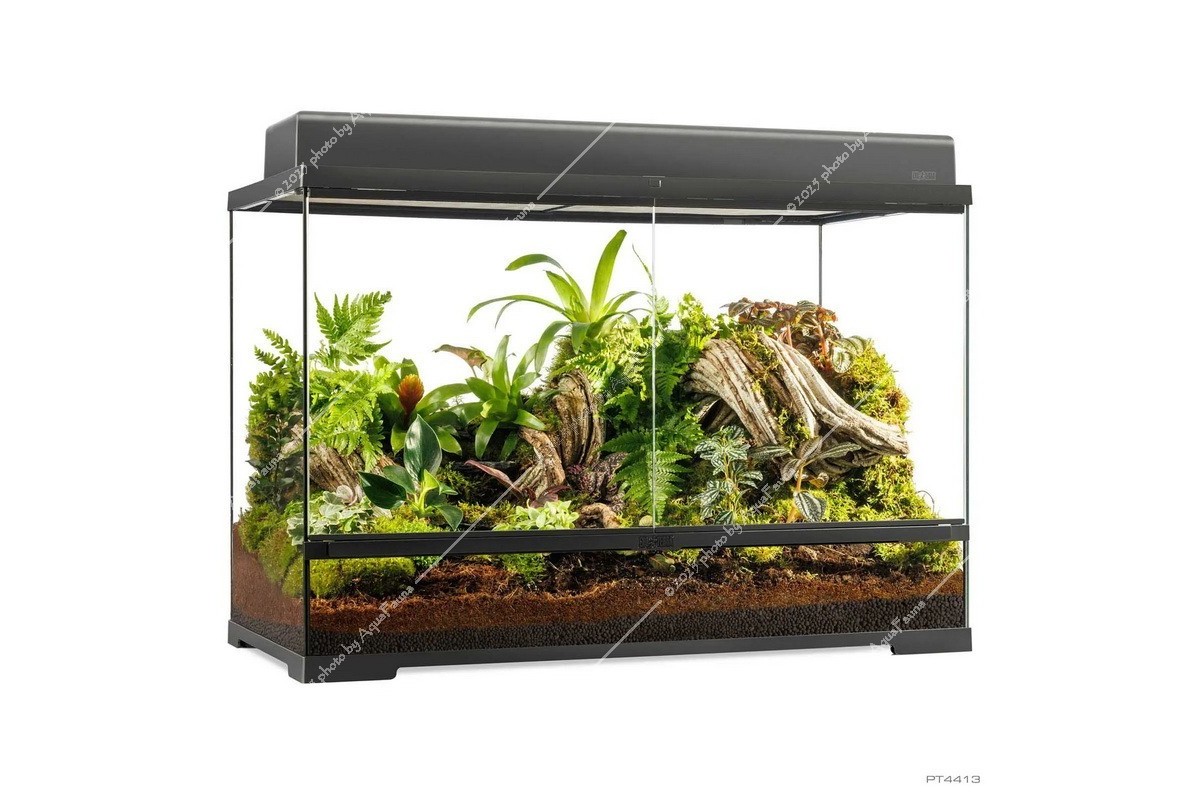 Fedezze fel az Exo Terra Pro Terrarium™ kifinomultságát, ahol a legmodernebb dizájn páratlan funkcionalitással találkozik. Európai herpetológusok által tervezett Advanced Natural Terrarium ideális otthont nyújt hüllőinek, kétéltűinek vagy gerinctelen állatainak.
