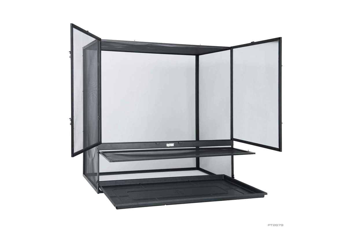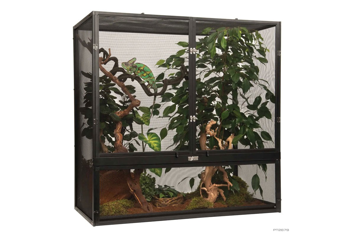 Az Exo Terra terrárium szúnyogháló tökéletes élőhely a fán élő hüllők és kétéltűek számára, amelyek érzékenyek a pangó levegőre. A korlátlan légáramlás optimális szellőzést biztosít, miközben minimalizálja a szagokat és a gombásodást a hüllők élőhelyén. A szúnyogháló kialakítása szélesebb hőmérsékleti gradienst biztosít, ami segít a hüllőknek hatékonyabban szabályozni testhőmérsékletüket, és megakadályozza a túlmelegedést. Az alumínium szúnyogháló lehetővé teszi, hogy az UVB fényből vagy a napból származó ultraibolya sugarak mélyen behatoljanak a terrárium belsejébe. A szubsztrát tálca lehetővé teszi, hogy egy kis szubsztrátréteget helyezzen a permetező víz elnyelésére és a páratartalom növelésére. Az aljzattálca könnyen eltávolítható a terráriumból az alsó, forgóajtón keresztül. A masszív, nikkelezett zárak stabilitást biztosítanak a terráriumnak, és biztonságban tartják a hüllőket.