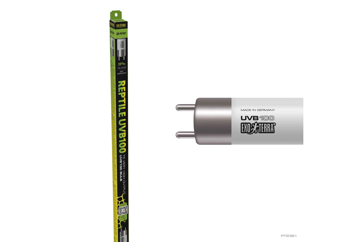 Az Exo Terra® Reptile UVB100 VHO T5 izzó elősegíti az egészséges D3-vitamin szintézist, ami viszont javítja a kalcium felszívódását – védve a metabolikus csontbetegségek ellen. UVA- és UVB-sugárzása meghaladja a hagyományos T8 izzók és az energiahatékony alternatívákét, míg a jobb UVB-áteresztő képessége alkalmassá teszi magasabb terráriumokban vagy sűrűbb szitákkal felszerelt terráriumokban való használatra.