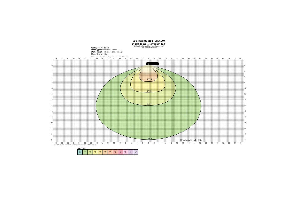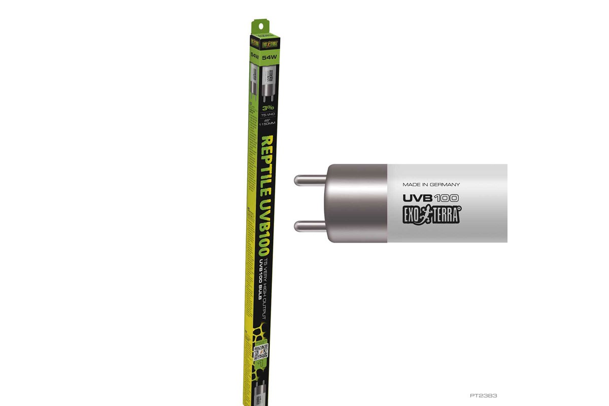 Az Exo Terra® Reptile UVB100 VHO T5 izzó elősegíti az egészséges D3-vitamin szintézist, ami viszont javítja a kalcium felszívódását – védve a metabolikus csontbetegségek ellen. UVA- és UVB-sugárzása meghaladja a hagyományos T8 izzók és az energiahatékony alternatívákét, míg a jobb UVB-áteresztő képessége alkalmassá teszi magasabb terráriumokban vagy sűrűbb szitákkal felszerelt terráriumokban való használatra.