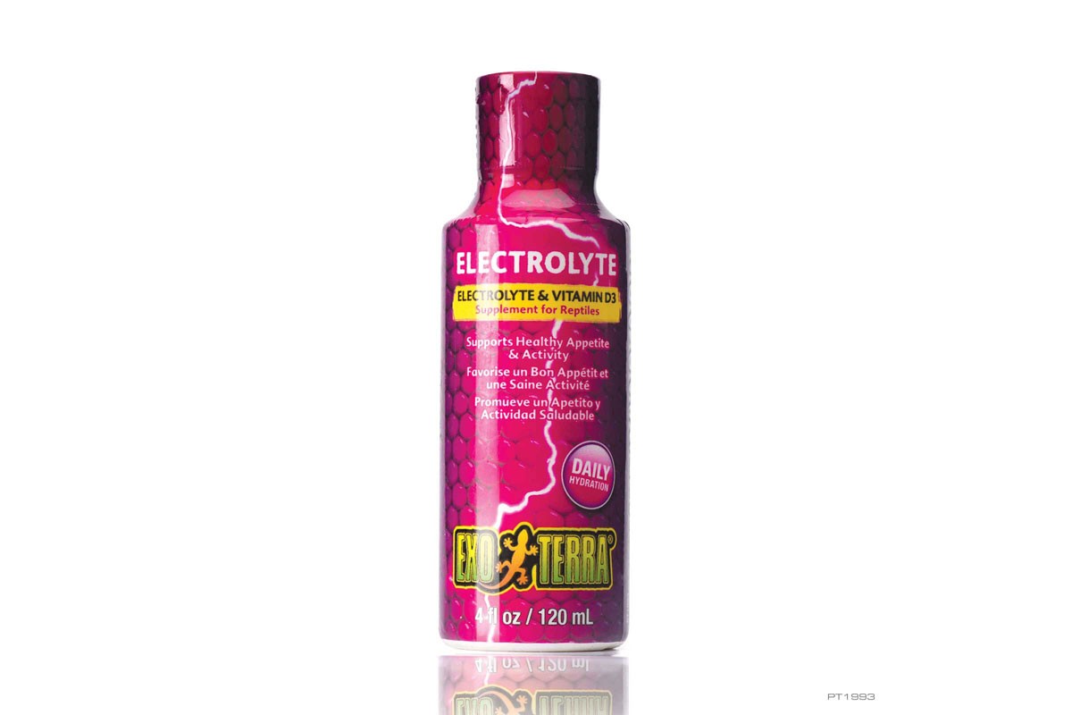 Az elektrolitok olyan ásványi anyagok (magnézium, kálium, nátrium és kalcium), amelyek a dehidratáció során, különösen stresszhelyzetekben elvesznek. Az Electrolyte fenntartja az elektrolitok kiegyensúlyozott áramlását a testnedvekben, és D3-vitamint biztosít a megfelelő kalciumfelszívódáshoz. A D3-vitamin létfontosságú az UV-fénynek nem kitett, fogságban tartott hüllők számára az anyagcsere-csontbetegségek megelőzése vagy visszafordítása érdekében.