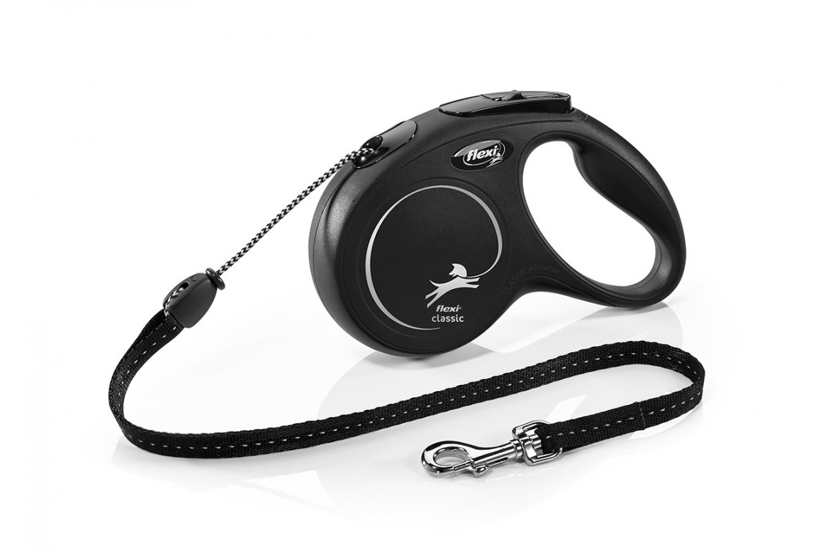 Flexi New Classic "M" (fekete) - zsinóros automata póráz (5 m) max. 20 kg