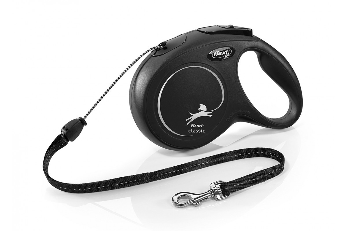 Flexi New Classic "M" (fekete) - zsinóros automata póráz (8 m) max. 20 kg